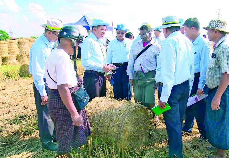 စိုက်ပျိုးရေး၊ မွေးမြူရေးနှင့် ဆည်မြောင်းဝန်ကြီးဌာန ဒုတိယဝန်ကြီး ဦးဗိုလ်ဗိုလ်ကျော်သည် နိုဝင်ဘာ ၂၄ ရက် မွန်းလွဲပိုင်းက လှည်းကူးမြို့နယ် အုန်းနှဲကုန်းကျေးရွာ၌ စက်မှုလယ်ယာဦးစီးဌာန အမှတ် (၃၅) စက်မှုလယ်ယာစခန်း (ထောက်ကြံ့မြို့) ၌ ကျင်းပသည့် ကောက်ရိုးထုံးစက် (Round Baler)၊ ကောက်ရိုးဖြတ်စက် (Rotary Mulcher)၊ မြေဩဇာပက်ဖျန်းစက် (Fertilizer Spreader) သရုပ်ပြပွဲသို့ တက်ရောက်အားပေးသည်။