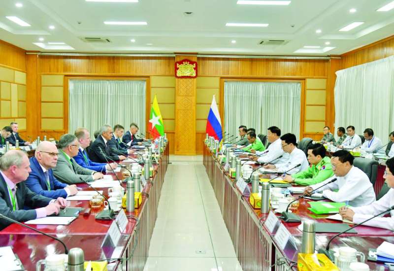 ကာကွယ်ရေးဝန်ကြီးဌာန ပြည်ထောင်စုဝန်ကြီး ဗိုလ်ချုပ်ကြီး မောင်မောင်အေးအား ရုရှားဖက်ဒရေးရှင်းနိုင်ငံ ဒုတိယကာကွယ်ရေးဝန်ကြီး Mr. Vasilii Sergeevich Osmakov က ယနေ့မွန်းလွဲပိုင်းတွင် ပြည်ထောင်စုဝန်ကြီးရုံးဧည့်ခန်းမ၌ ဂါရဝပြုလာရောက်တွေ့ဆုံသည်။