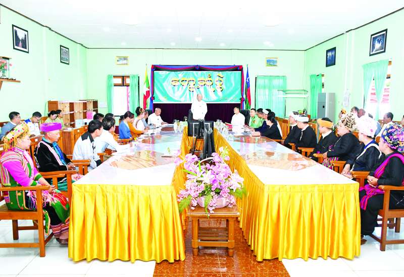 တိုင်းရင်းသားလူမျိုးများရေးရာဝန်ကြီးဌာန ပြည်ထောင်စုဝန်ကြီး Jeng Phang နော်တောင်သည် ပအိုဝ်းကိုယ်ပိုင်အုပ်ချုပ်ခွင့်ရဒေသအတွင်းရှိ တိုင်းရင်းသားစာပေနှင့် ယဉ်ကျေးမှုအသင်းအဖွဲ့များအား ယနေ့နံနက်ပိုင်းတွင် ဟိုပုံးမြို့နယ် ပအိုဝ်းကိုယ်ပိုင်အုပ်ချုပ်ခွင့်ရဒေသ အစည်းအဝေးခန်းမ၌ တွေ့ဆုံသည်။
