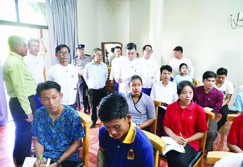 ပညာရေးဝန်ကြီးဌာန ပြည်ထောင်စုဝန်ကြီး ဒေါက်တာညွန့်ဖေနှင့် တာဝန်ရှိသူများသည် ယနေ့နံနက်ပိုင်းတွင် တောင်ကြီးတက္ကသိုလ်သို့ ရောက်ရှိပြီး အဝေးသင်တက္ကသိုလ် ဒုတိယအသုတ် ဝိဇ္ဇာတွဲဘာသာရပ်စာမေးပွဲများ ဖြေဆိုနေမှုကို ကြည့်ရှုအားပေးကာ ပါမောက္ခချုပ်၊ ဒုတိယပါမောက္ခချုပ်များ၊ ပါမောက္ခများနှင့် တွေ့ဆုံသည်။