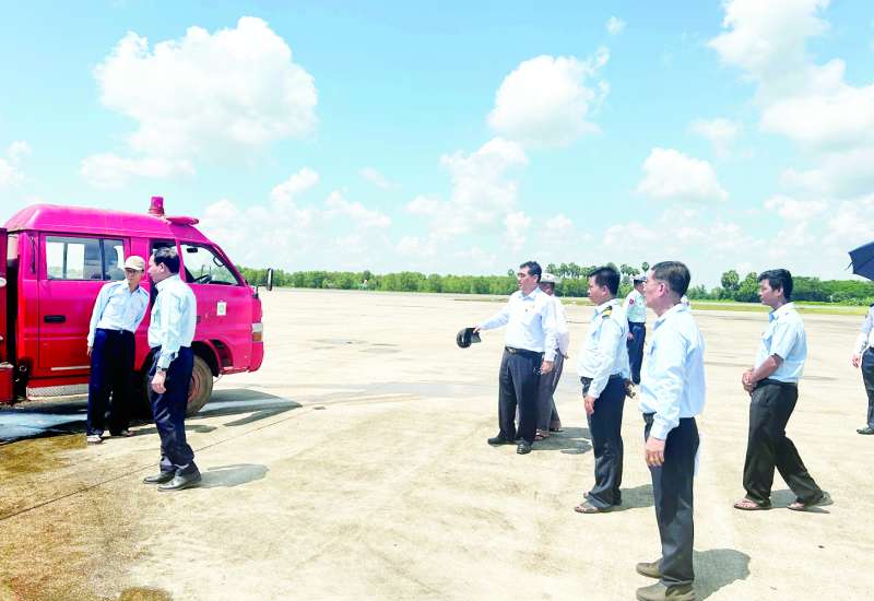 ပို့ဆောင်ရေးနှင့်ဆက်သွယ်ရေးဝန်ကြီးဌာန ဒုတိယဝန်ကြီး ဦးအောင်ကျော်ထွန်းသည် တာဝန်ရှိသူများနှင့်အတူ ယမန်နေ့နံနက်ပိုင်းက ဧရာဝတီတိုင်းဒေသကြီး ပုသိမ်မြို့ရှိ ပုသိမ်လေဆိပ် ပြင်ဆင်ဆောင်ရွက်နေမှုအခြေအနေကို သွားရောက်ကြည့်ရှုစစ်ဆေးသည်။