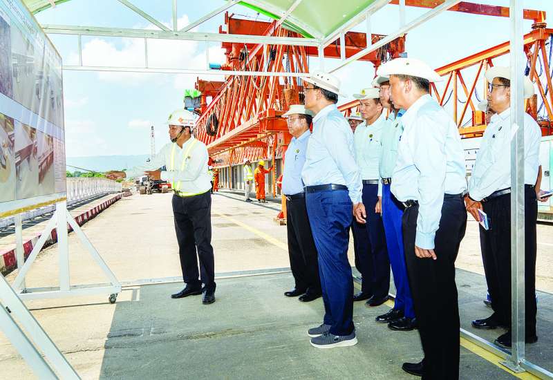 ဆောက်လုပ်ရေးဝန်ကြီးဌာန ပြည်ထောင်စုဝန်ကြီး ဦးမျိုးသန့်သည် ဒုတိယဝန်ကြီး ဦးဝင်းဖေ၊ တာဝန်ရှိသူများနှင့်အတူ ယနေ့တွင် ရန်ကုန် - မန္တလေး ပြည်ထောင်စုလမ်းမကြီး မိုင်တိုင်အမှတ် (၂၄၅/၇) ရှိ နဝင်းချောင်းတံတား (အဆုံ) အား မူလ ၂ လမ်းသွား မှ ၄ လမ်းသွားတံတားအဖြစ် အဆင့်မြှင့်တင် တည်ဆောက်ခြင်းလုပ်ငန်းခွင်အား သွားရောက်ကြည့်ရှုစစ်ဆေးပြီး လုပ်ငန်းလိုအပ်ချက်များ မှာကြားသည်။