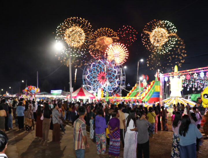 In addition, to allow festival-goers to enjoy modern music, a stage show featuring nationally renowned singers — including Kai Zar, Wai La, Nay Min Ein, Hlwan Paing, Shwe Htoo, G Lat, Wai Gyi, He’ Lay, Phyo Gyi, Phaw Wae, Joe Lay, Ni Ni Khin Zaw, Wyne Su Khine Thein, Cherry Thin, Sandi Myint Lwin, Yadana Mai, Irene Zin Mar Myint, Su Htet Hlaing, Mi Sandi, Thar Soe, Than Tha Moe Theint, and Nan Su Yati Soe — took place, with the artistes performing popular songs accompanied by the Hi Bird Band and the Runner Band, drawing a large and enthusiastic crowd.