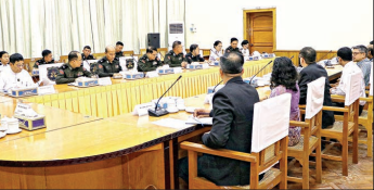 Together with the Union minister at the meeting were Deputy Minister U Htay Hlaing, the Permanent Secretary, Directors-General, and other senior officials.
