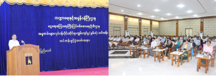 At the ceremony, Union Minister Dr Kan Zaw highlighted that the course will help staff better understand the country’s economic objectives and policies, reform processes, and plans of the Ministry of Finance and Revenue, and enhance their capacity in their workplaces. Moreover, he also highlighted that the course will also provide the staff with a better understanding and expertise in civil service law, rules, financial procedures and the responsibilities of the department, such as supervising and inspecting microfinance companies, supervising private insurance companies, implementing anti-money laundering and counter-terrorism financing programmes, supervising the state lottery industry and state-owned banks.