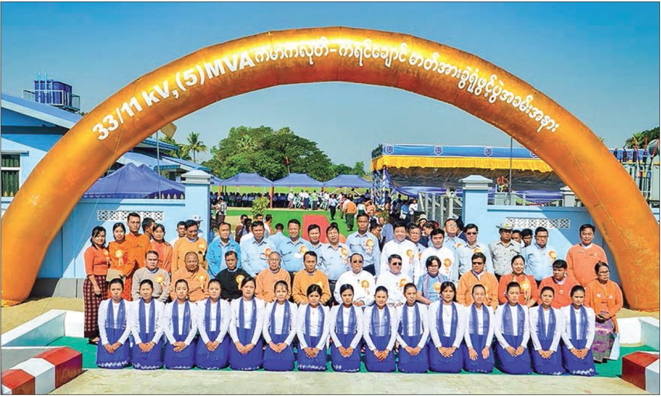 This was followed by Regional Hluttaw Deputy Speaker U Lin Naing Myint, Deputy Minister for Electricity and Energy U Khin Maung Win,  Regional Minister for Electricity, Industry, Transportation and Communication Daw Nilar Kyaw, Pyithu Hluttaw representative Daw Aye Mya Mya Myo, Regional Hluttaw representative U Zaw Moe Lwin and Daw Thet Thet Mu cutting ceremonial ribbons to open the archway of the sub-power station.