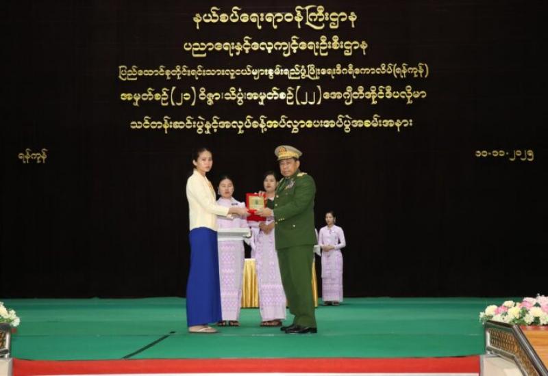 The graduation ceremony of the BA and BSc Degree Course 21, the AGTI Diploma Course 22, and the job appointment letter handover ceremony of Nationalities Youth Resource Development Degree College (Yangon) took place yesterday at the convocation hall of the Degree College in Dagon Myothit (Seikkan) Township, Yangon Region.