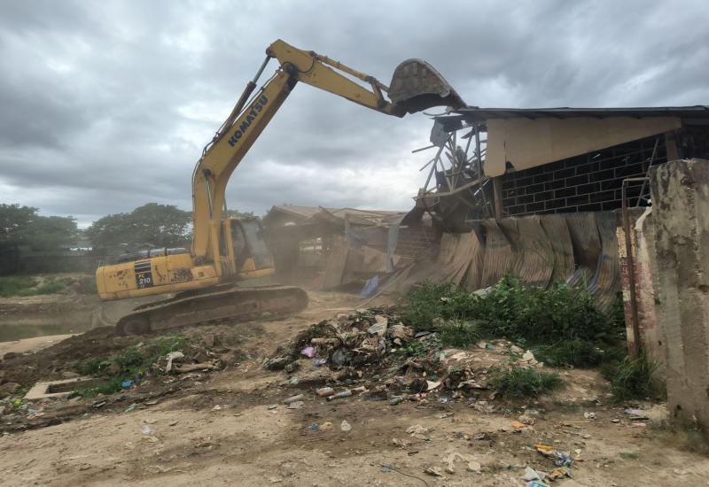 Illegal gates have been opened along the banks of the Thaungyin River in Myawady Township, Kayin State, where armed terrorist groups have been collecting money to import, store, and distribute illegal goods from abroad. Tatmadaw has now regained control of such area and is demolishing those trade gates and warehouses used for storing and distributing such goods.