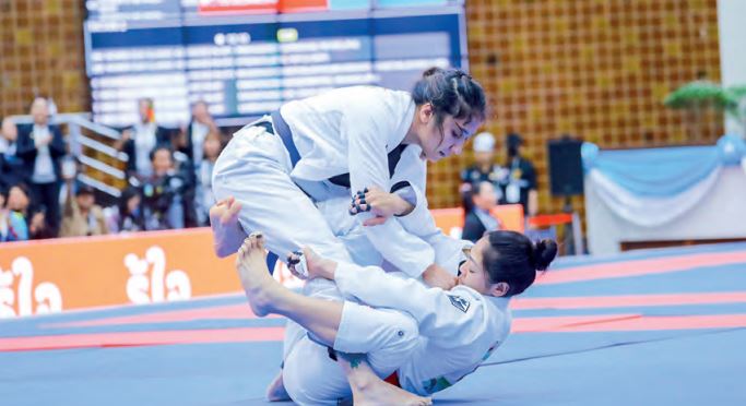 the Ronnaphakat Building Navaminda Kasatriyadhiraj Air Force Academy, Myanmar competed in men’s and women’s weight categories (–48, –57, –69, –85 kilogrammes) and in team events. In the women’s –67-kilogramme taekwondo event, Myanmar’s Kay Thwe Mon Lin won the silver medal after competing against an athlete from Thailand.