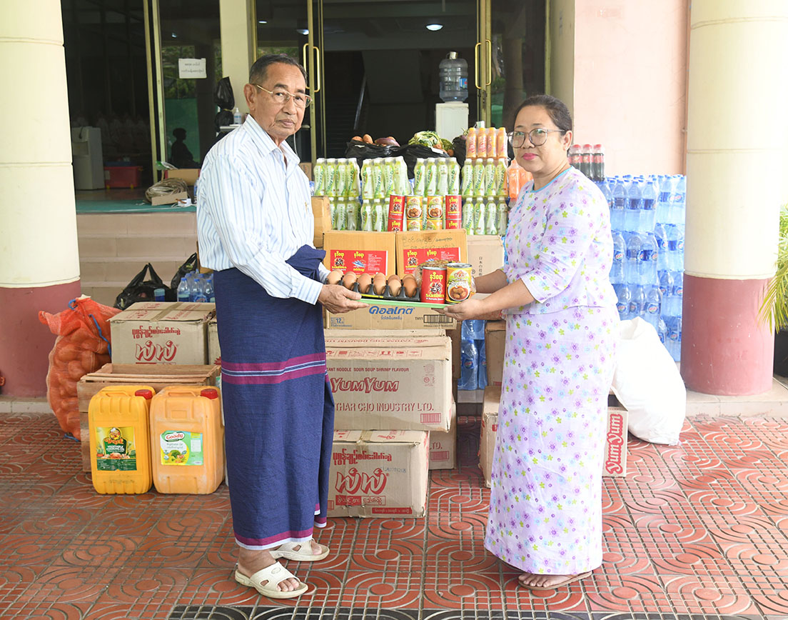 State Administration Council Member Mahn Nyein Maung visited earthquake-affected staff and families from the SAC office yesterday.