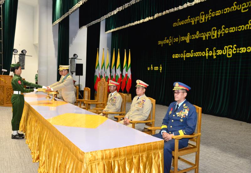 A commissioning ceremony for trainees from the 10th intake (female) of the Defence Services Institute of Nursing and Paramedical Sciences was held yesterday morning at the institute’s convocation hall in Mingaladon Township, Yangon Region.