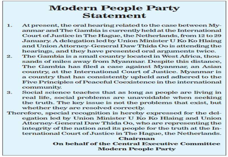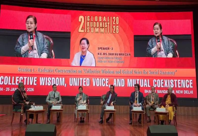A Myanmar delegation led by Daw Nu Mra Zan, Deputy Minister for Religious Affairs and Culture, returned to Myanmar from India by air on 26 January after attending the Second Global Buddhist Summit, which was held in New Delhi, India, from 24 to 25 January.
