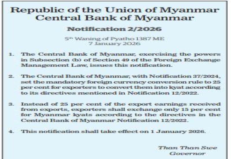 Republic of the Union of Myanmar Central Bank of Myanmar Notification 2/2026