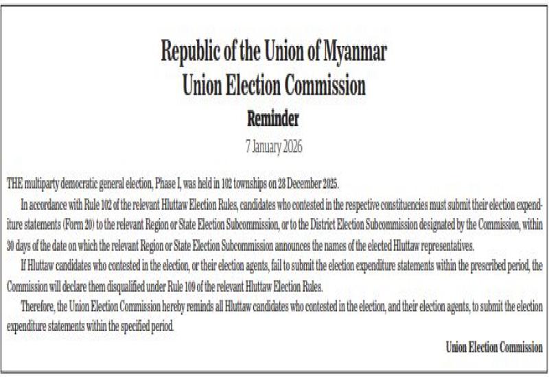 The Union Election Commission issued the announcement on competition of the candidates for the seats of Region or State Hluttaw in Phase I of the Multiparty Democratic General Election 2025.