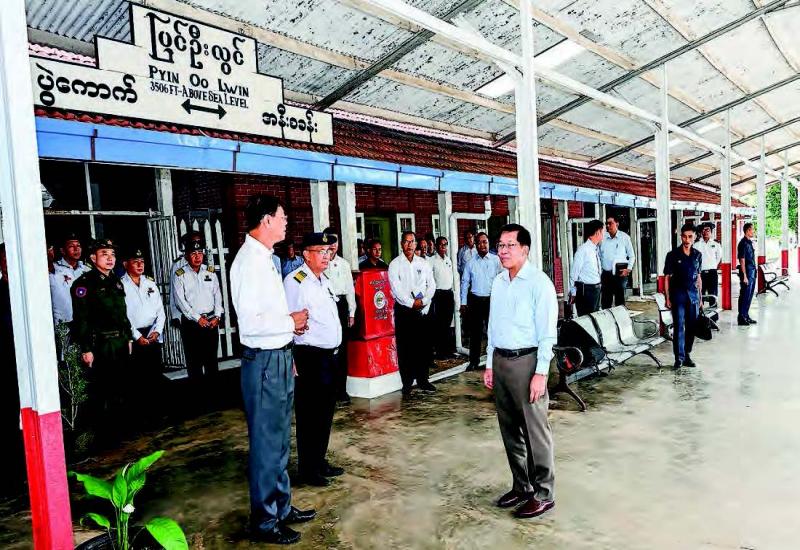 A CTING President of the Republic of the Union of Myanmar, Chairman of the State Security and Peace Commission of the Republic of the Union of Myanmar, Senior General Min Aung Hlaing, accompanied by Commission Secretary and Joint Executive Chief General Ye Win Oo, commission members, Union ministers, senior Tatmadaw officers from the Office of the Commander-in-Chief and officials, inspected the PyinOoLwin railway station yesterday afternoon.