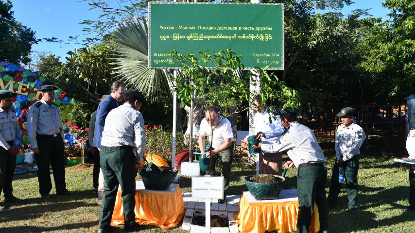 Then, the Russian delegation attended the tree-planting ceremony marking Russia-Myanmar friendship at the entrance to Ngwehsaung town and left for Yangon by flight. They were seen off at the Pathein Airport by Ayeyawady Region Chief Minister U Tin Maung Win, regional ministers, officials and students.