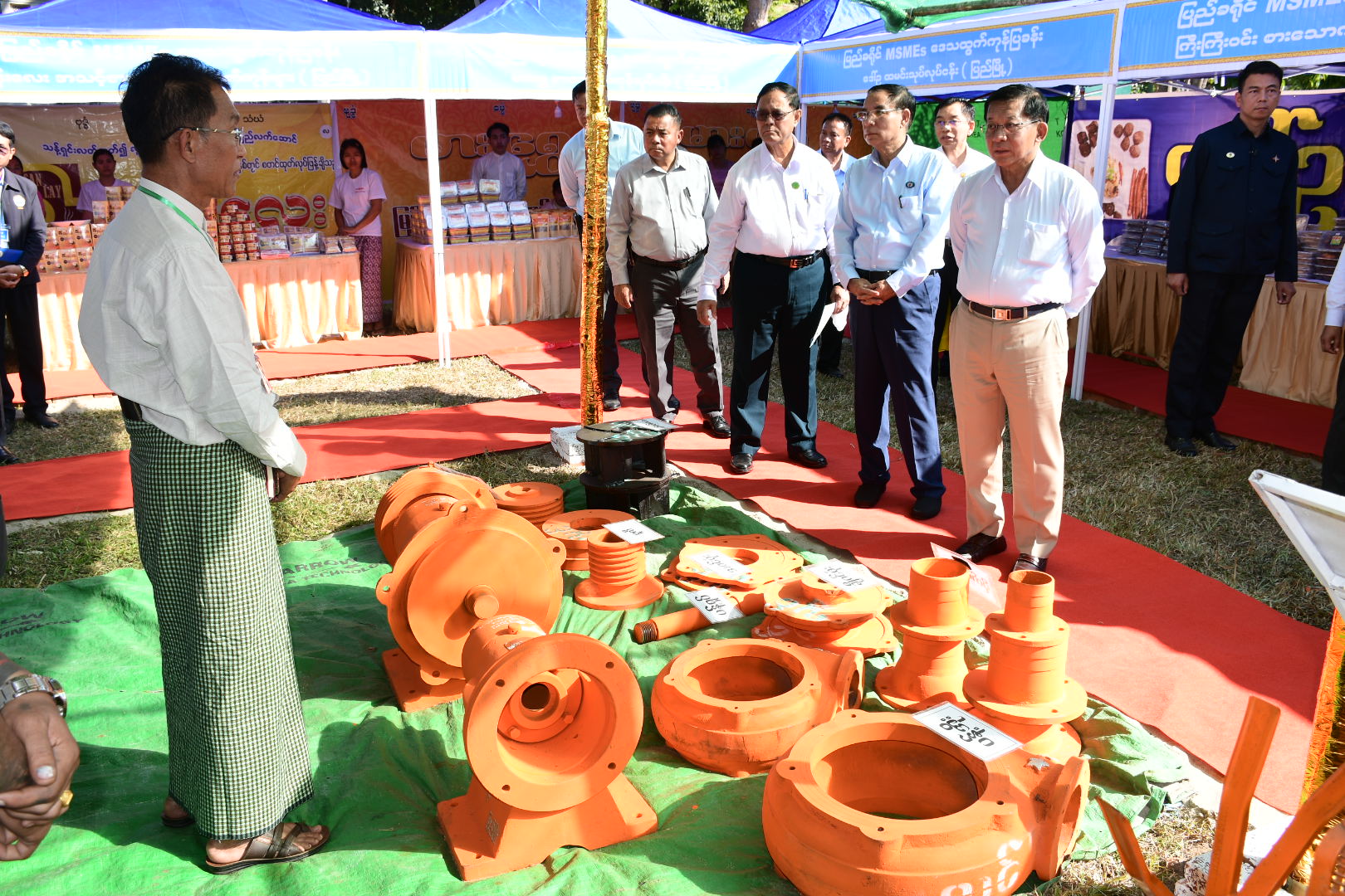 He urged that it is necessary to strive to further increase the production of agricultural and livestock products within the district and the Bago Region. Likewise, in manufacturing MSME products, measures should be taken to ensure high-quality materials and to carry out advanced packaging systems.