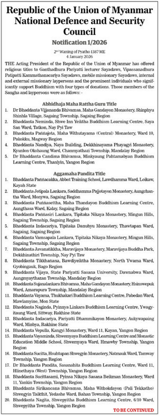 Republic of the Union of Myanmar Union Election Commission Announcement 28/2026