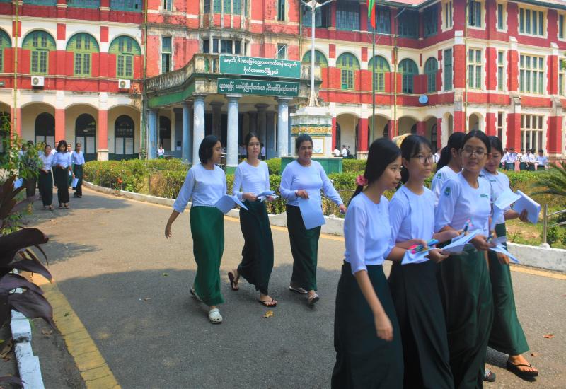 Union Minister for Education Dr Chaw Chaw Sein inspected students sitting examinations at the Naypyitaw State Academy on the morning of 16 March, accompanied by Deputy Minister Dr Zaw Myint, the academy’s rector, and other officials.