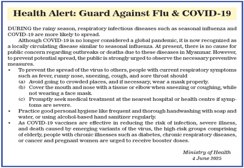 THE Fisheries Department under the Ministry of Agriculture, Livestock and Irrigation issued a notice to farmers to take preventive measures to mitigate the impacts of floods on fish farms. The warning states that fish farming across the country contributes to generating foreign revenue and domestic food security.