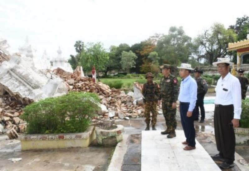 UNION Minister for Industry Dr Charlie Than arrived yesterday morning at No 8 Garment Factory in Pyawbwe Township, Mandalay Region, to inspect the repair works on buildings, equipment, and the transformer damaged by the earthquake.