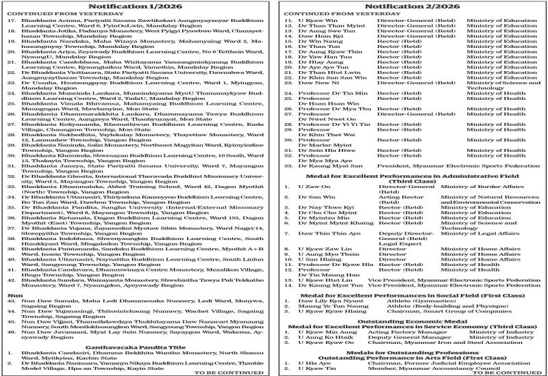 Republic of the Union of Myanmar Central Bank of Myanmar Notification 2/2026