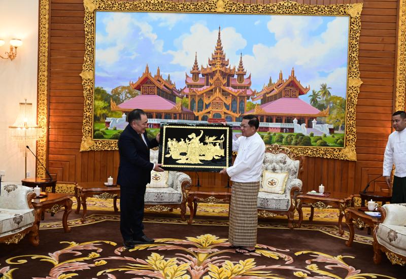 A delegation led by Mr Sholban Kara-Ool, Deputy Chairman of the State Duma of the Russian Federation, who observed the electoral process of the multiparty democratic general election held in Myanmar, called on Acting President of the Republic of the Union of Myanmar and State Security and Peace Commission Chairman Senior General Min Aung Hlaing at the Bayintnaung Villa in Nay Pyi Taw yesterday afternoon.