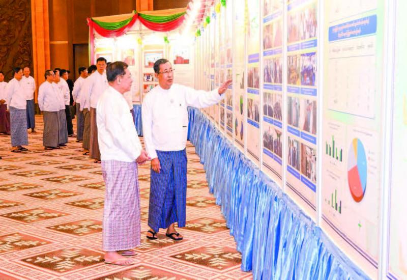 State Administration Council Vice-Chairman Deputy Prime Minister Vice-Senior General Soe Win delivered a speech at the work coordination meeting 5/2024 of the Illegal Trade Eradication Steering Committee at the Ministry of Commerce in Nay Pyi Taw yesterday.