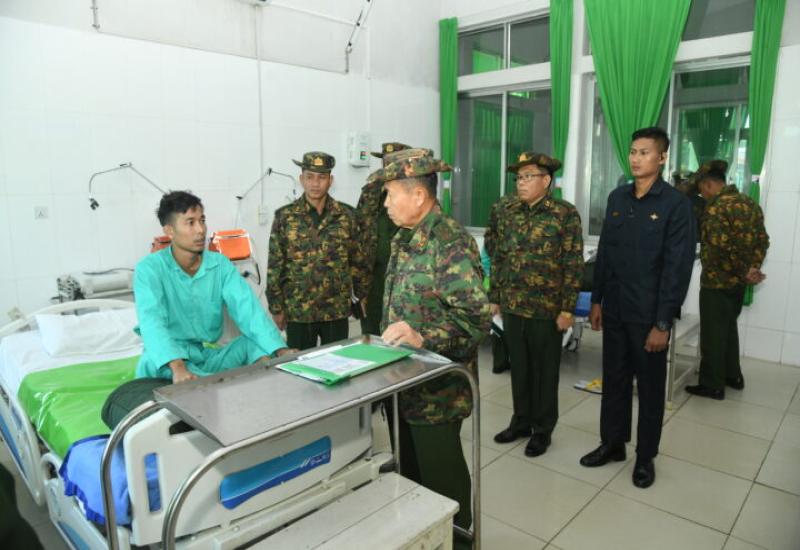 State Security and Peace Commission Vice-Chairman, Deputy Commander-in-Chief of Defence Services, and Commander-in-Chief (Army) Vice-Senior General Soe Win, accompanied by Senior Tatmadaw officers from the Office of the Commander-in-Chief (Army), the commander of the Northern Command and relevant officials, comforted Tatmadaw officers, other ranks, members of Myanmar Police Force and People’s Militia (local) who are receiving medical treatments at the local military hospital in Myitkyina yesterday morning.