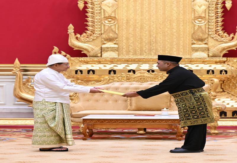 Acting President of the Republic of the Union of Myanmar and State Security and Peace Commission Chairman Senior General Min Aung Hlaing accepted the Credentials of Ambassador of Brunei Darussalam to Myanmar Haji Mohamad Sarif Pudin bin Matseru, at the Credentials Hall of the Office of the National Defence and Security Council in Nay Pyi Taw at 11 am yesterday.