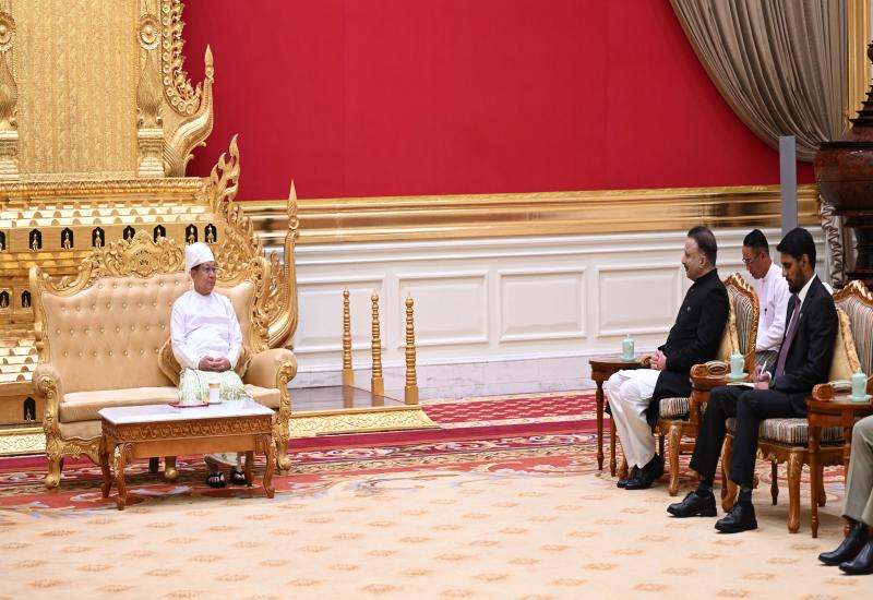 Acting President of the Republic of the Union of Myanmar and State Security and Peace Commission Chairman Senior General Min Aung Hlaing accepts Credentials of the Pakistani Ambassador.