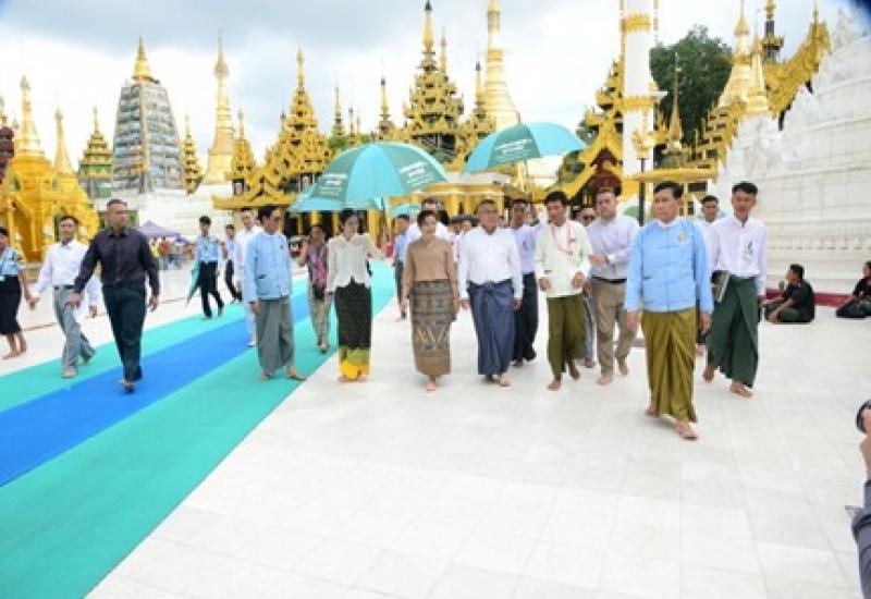 At the invitation of the Commander-in-Chief (Air), General Tun Aung, a delegation led by the Commander-in-Chief of Royal Thai Air Force, Air Chief Marshal Punpakdee Pattanakul, and his wife, who arrived to conduct Bilateral Engagement Activities aimed at further strengthening friendship between the air forces of Myanmar and Thailand, visited Kaba Aye Pagoda, Shwedagon Pagoda and Bogyoke Aung San Market in Yangon yesterday morning.