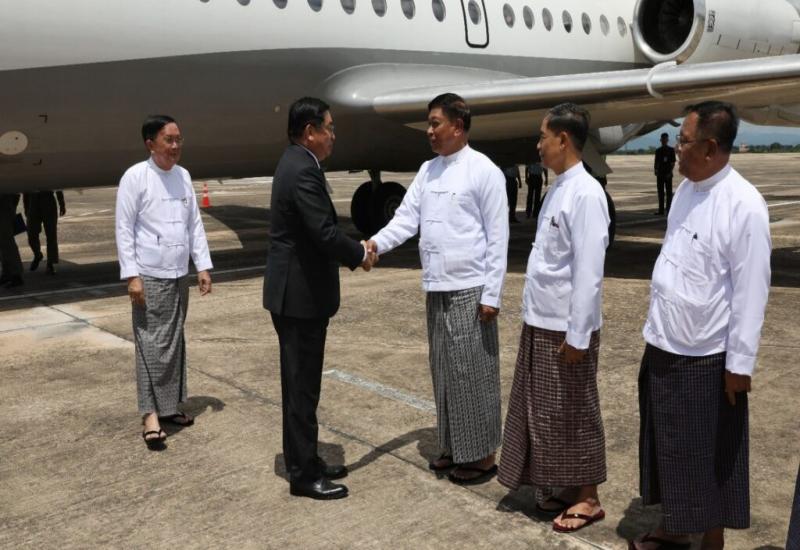At the invitation of the Commander-in-Chief (Air) General Tun Aung, a delegation led by Thai Air Chief Marshal Punpakdee Pattanakul and wife arrived in Nay Pyi Taw yesterday morning on an official goodwill visit to launch bilateral engagement activities between two air forces, and high-ranking officers from Tatmadaw (Air), the Thai military attaché to Myanmar, and officials welcomed them at Nay Pyi Taw airport.
