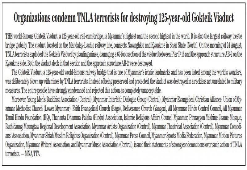 Organizations condemn TNLA terrorists for destroying 125-year-old Gokteik Viaduct