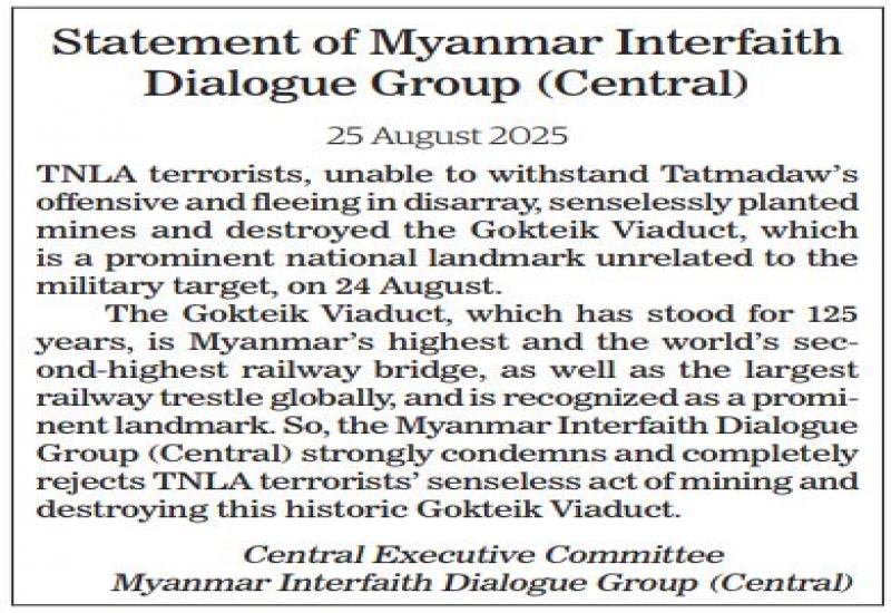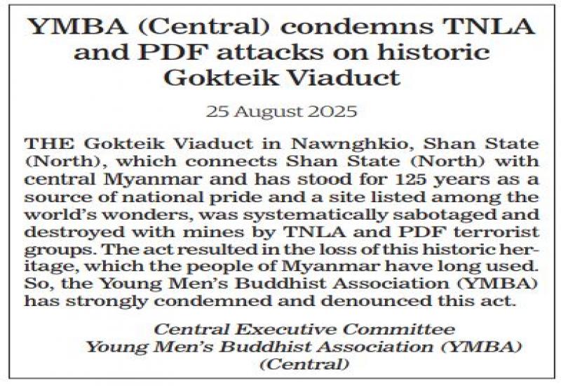 YMBA (Central) condemns TNLA and PDF attacks on historic Gokteik Viaduct