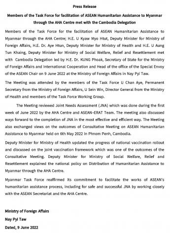 Members of the Task Force for facilitation of ASEAN Humanitarian Assistance to Myanmar through the AHA Centre met with the Cambodia Delegation