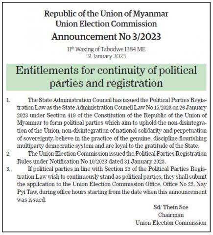 Submitted by moiuser on 1 February 2023 Entitlements for continuity of political parties and registration