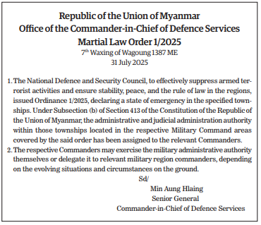 Republic of the Union of Myanmar Office of the Commander-in-Chief of Defence Services Martial Law Order 1/2025