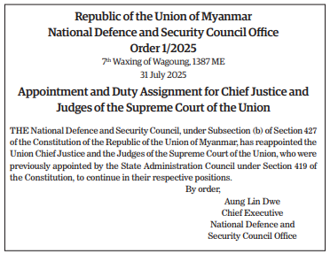 Submitted by moiuser3 on 1 August 2025 Republic of the Union of Myanmar National Defence and Security Council Office Order 1/2025