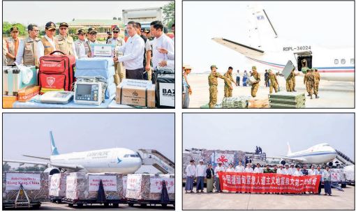 The humanitarian aid supplies and medicines from China and Laos and the humanitarian aid supplies and medicines, relief items, transport vehicles, rescue teams, doctors and nurses from Indonesia arrived at Nay Pyi Taw Tatmadaw Airport yesterday.