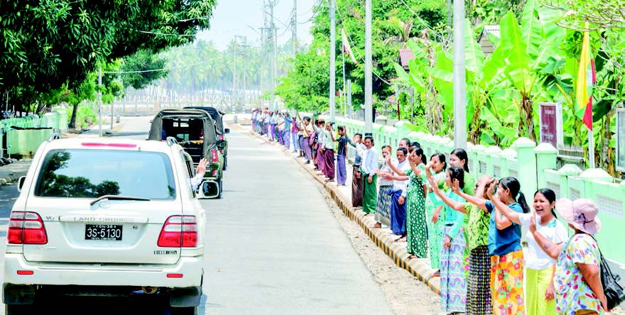 The Senior General and party enjoyed Myanmar traditional Thingyan festival together with departmental staff, town elders and local people by spraying each other. As the Senior General viewed round the city in a motorcade, local people warmly and frankly waved to the Senior General.