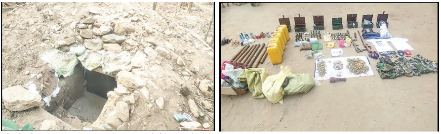 On 20 April, Tatmadaw columns engaged with KIA and PDF terrorists who arrived around Pazigyi Village and the surrounding area in Kanbalu Township, and those terrorists withdrew to the northern part. In the incident, four bodies of terrorists were seized with arms and ammunition from the sandbag bankers and communication canals near the wall of the monastery and the school.