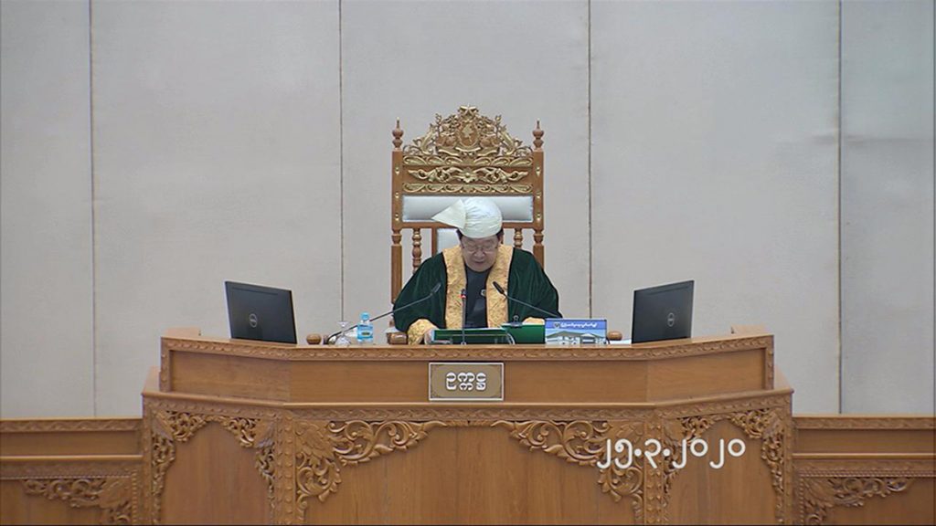 Next, the Speaker announced the Amyotha Hluttaw has sent back the tax tribunal bylaw and high court lawyer council election bylaw without any amendments.