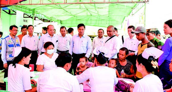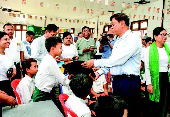 The Deputy Prime Minister and party inspected the free healthcare services of specialists in Pauktaw Township and comforted the patients. On arrival at the basic education high school of Pauktaw Township, they observed the repairing works and school enrolment processes for the 2023-2024 academic year.