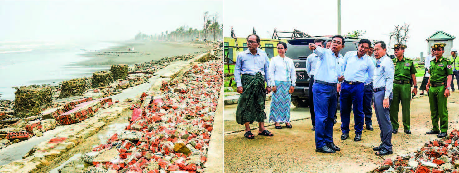 VICE-SENIOR General Soe Win, Deputy Prime Minister and Vice-Chairman of the State Administration Council, who also serves as the Chairman of the National Disaster Management Committee, led a delegation that included SAC Members Admiral Tin Aung San and Dr Aung Kyaw Min, Union Ministers U Ko Ko Hlaing, U Maung Maung Ohn, Dr Myo Thein Kyaw, and Dr Thet Khaing Win, senior military officers from the Office of the Commander-in-Chief, deputy ministers, and other relevant officials. They arrived at Sittway Airport yesterday to assess the ongoing rehabilitation processes and express their gratitude to the departmental staff, rescue teams, and Parahita organizations involved in the cleanup efforts following the devastation caused by Cyclone Mocha in Rakhine State.