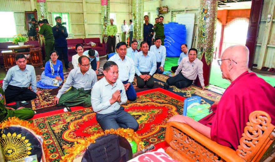 Lastly, the Vice-Senior General and his delegation paid homage to Presiding Sayadaw Agga Maha Ganthavacaka Bhaddanta Nanda Siri of Nanda Rama Pariyatti Buddhist Learning Centre in Magyeemyaing Ward of Sittway, making donations as an act of reverence.