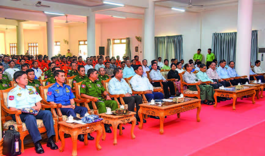 Finally, the Vice-Senior General attended a ceremony held at Sasana Beikman of Lawkananda Pagoda to honour the departmental staff, relief teams, and Parahita organizations involved in the cleanup efforts following Cyclone Mocha. During the event, the Vice-Senior General expressed the government’s appreciation for the Myanmar Police Force, Red Cross Parahita, Fire Brigade, and Parahita organizations that participated in the rescue operations, highlighting their invaluable contributions. He mentioned that international countries, including ASEAN, anticipated significant losses, but the proactive measures and establishment of the Disaster Management Centre (DMC) on 8 May, based on lessons learned from the Nargis storm, helped mitigate the impact. The Vice-Senior General stressed the importance of continued cooperation and unity in the rehabilitation process, emphasizing that the strength of the nation lies within its collective efforts.