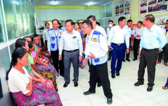 Next, they proceeded to Sittway General Hospital (500-bed) where Medical Superintendent Dr Kyi Lwin reported on the damage sustained by hospital buildings and staff housing due to Cyclone Mocha. The Vice-Senior General provided necessary directives in response to the situation. During their visit, they also paid respects to Done Pike Sayadaw Bhaddanta Wunna, a 105-year-old monk with 85 vasa, receiving medical treatment at the hospital, and enquired about his well-being. Furthermore, they offered comfort to the local patients and inspected the hemodialysis unit.