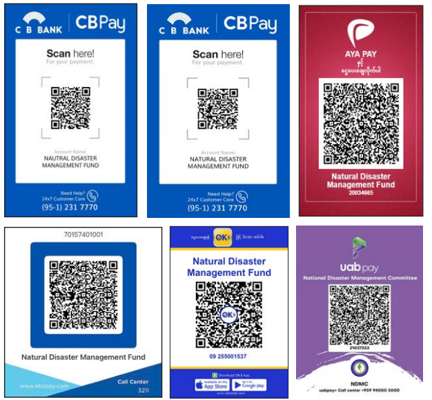 5. People make donations through CB Pay, AYA Pay, OK $, UAB pay and Citizens Pay which are widely used to enhance convenience for donors. To donate, please scan the QR code and enter the code provided within it.