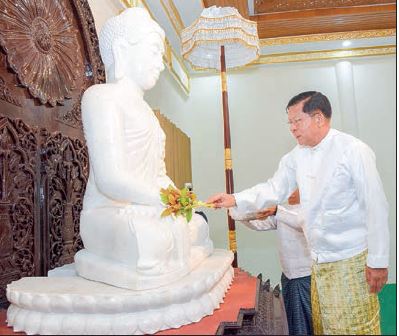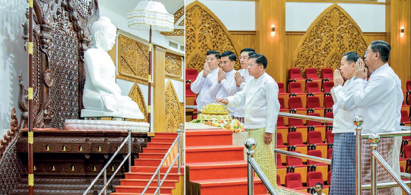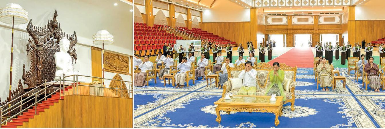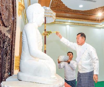A CEREMONY to convey a Buddha Image to Maravijaya Chamber took place in conjunction with conveyance of Naungdawgyi Buddha Image to Aggadipati Withongama ordination hall of the Sasana Beikman in Maravijaya Buddha Park in Dekkhinathiri Township of Nay Pyi Taw yesterday morning, with attendance of Chairman of the State Administration Council Prime Minister Senior General Min Aung Hlaing.